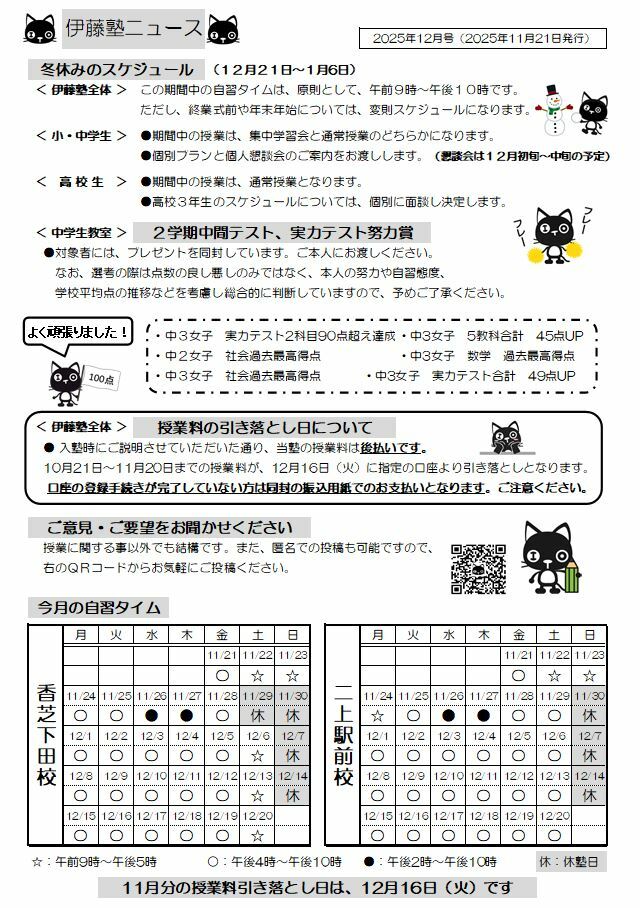2025年12月度塾ニュース